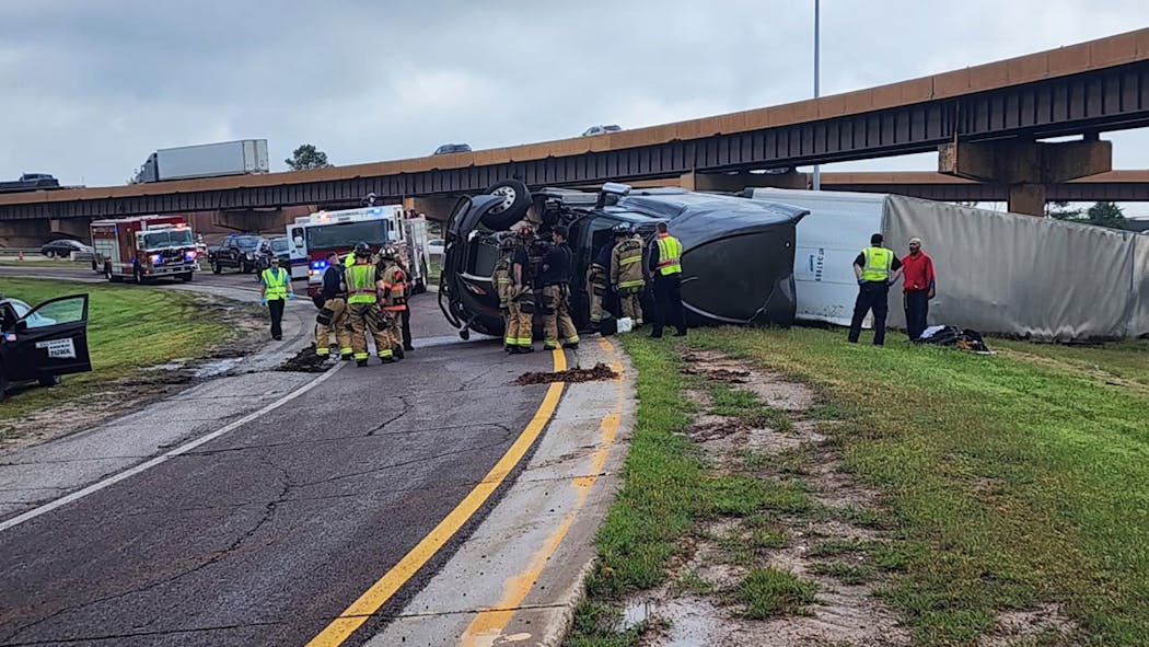 Authorities Respond To Semi Rollover Crash In SW OKC
