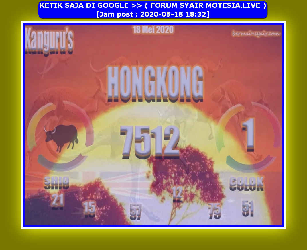 Syair HK Hari Rabu 20 Mei 2020 Royal Syair